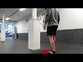Static stretch for the Soleus. Place ball of foot on an elevated platform and drop knee downwards, keeping heel on the floor. Hold for 10 seconds. Repeat both sides